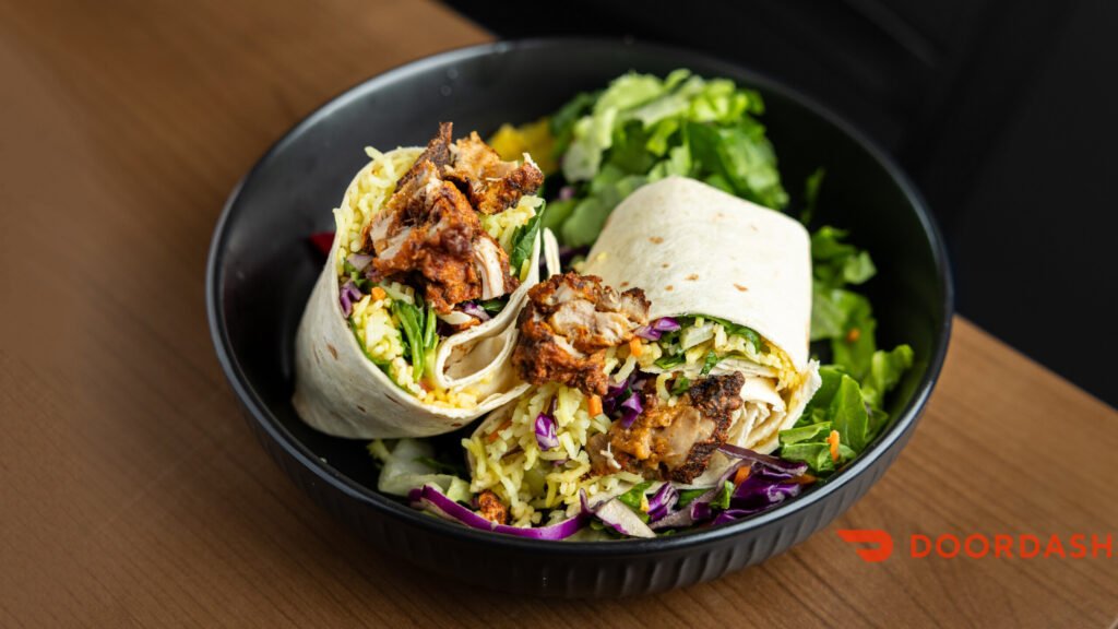 Chicken tikka, yellow rice, house salad, garlic yogurt & cilantro mint sauce